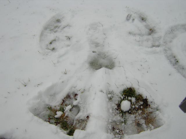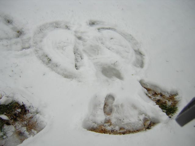 So, we invited our lovely neighbors over to play in the snow with us. (or was it them who invited themselves? I can’t remember) We all worked together to build a snowman. I figured I would try to make a cooler snowman, but maybe he was too cool. The girls then decided to make snow angels.