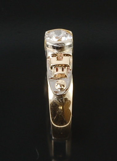 The ring itself was custom made (thanks, Chris Van Dyke) based off of a design I came up with. On either side of the diamond is a small yellow gold castle set against a white gold background with a circle above it. The castle (in addition to being a fine symbol of strength, safety, and stability itself) has the proportions of the castle you find at the end of a stage in Super Mario Brothers, which I felt sybolised both our shared love of video games as well and victoriously reaching a milestone. The circle above the castle is a little firework. It also proves what a dork I am, which perhaps has some value too.