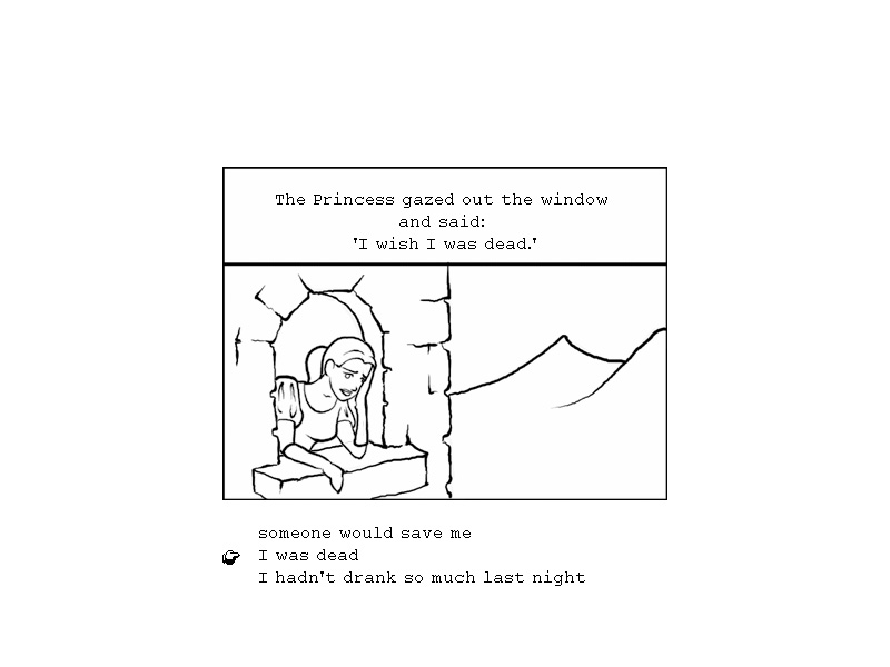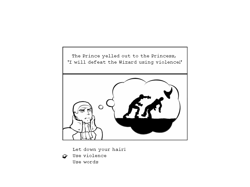 Comc Game is an interactive comic book; kind of like one of the old choose your own adventure stories but you can do more than just branching. Here is an analogy: If an old-school text adventure is like taking a test, playing comic game is like taking a multiple-choice pop quiz where the score doesn’t count towards your grade.