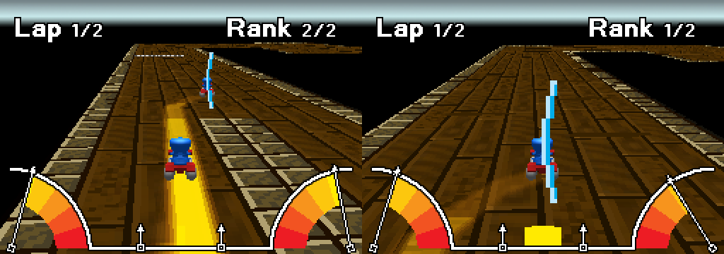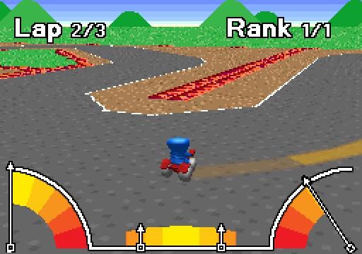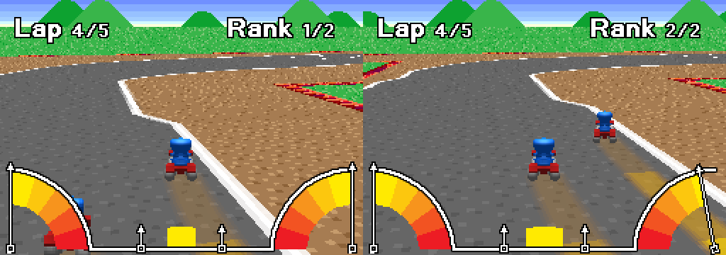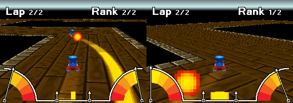 However, there are a few things I wanted to do to intentionally deviate from the classic formula. The thing everyone loves about Mario Kart is that it’s very easy for anyone to jump in and feel like they have a chance. However, the game accomplishes this by assigning better random items to the players that are farther behind. This can be frustrating for skilled players because you feel like your skill doesn’t contribute to whether you win or loose. I think this reduces the gratification when less skilled players win because they didn’t necessarily deserve it. Mario Kart is a series where you can never really tell whether the sequels are better because they keep introducing random items and hazards that seem to take away from the experience.