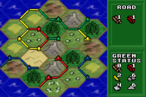 This was a very simple Game Boy Advance game based off of the popular board game Settlers of Catan. Settlers is a pretty simple game; if you want to know the rules, you can just interweb search for them.