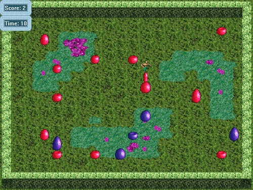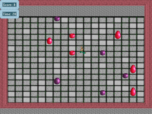 The Blob Game is a simple game where you just run around in an isometric 2d tile map and when you are adjacent to one of the randomly generating bouncing jellies, you punch it and get a point. You have to get a certain number of points to progress to the next stage.